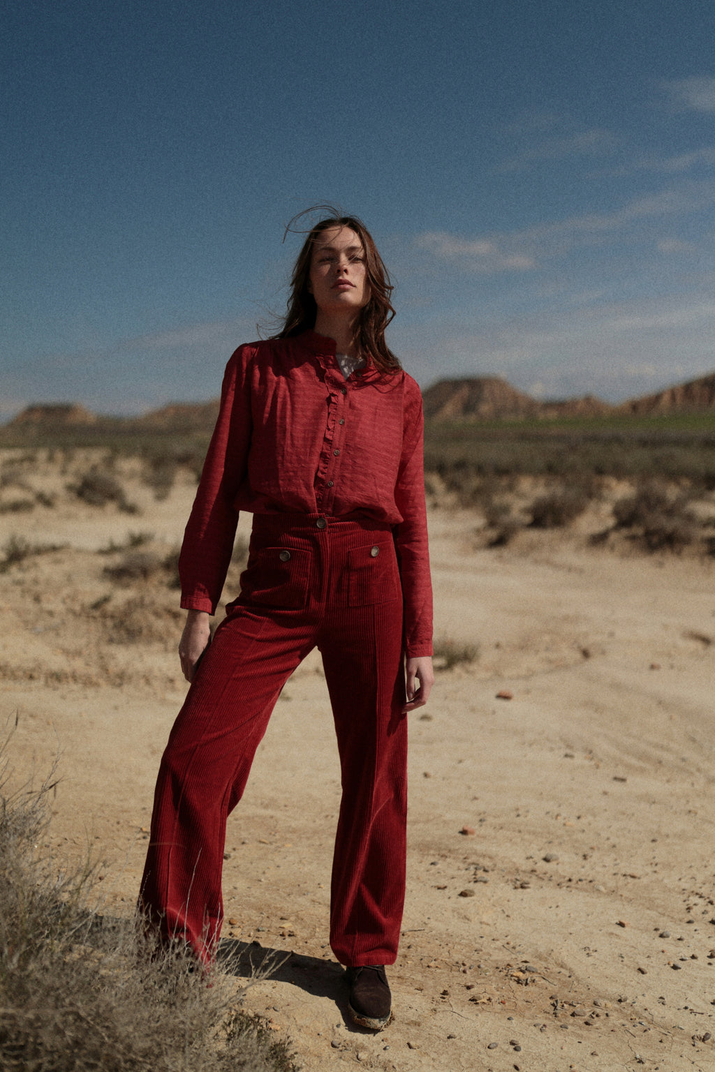 Blusa de estilo relajado confeccionada en un tejido ligero que aporta comodidad durante todo el día. Su diseño incorpora una botonadura frontal detallada y un sutil acabado texturizado que añade carácter sin perder elegancia. Perfecta para combinar tanto con prendas formales como con looks casuales, esta blusa ofrece un ajuste favorecedor y una caída natural que realza la silueta. Ideal para quienes buscan una prenda versátil, moderna y fácil de integrar en cualquier armario.