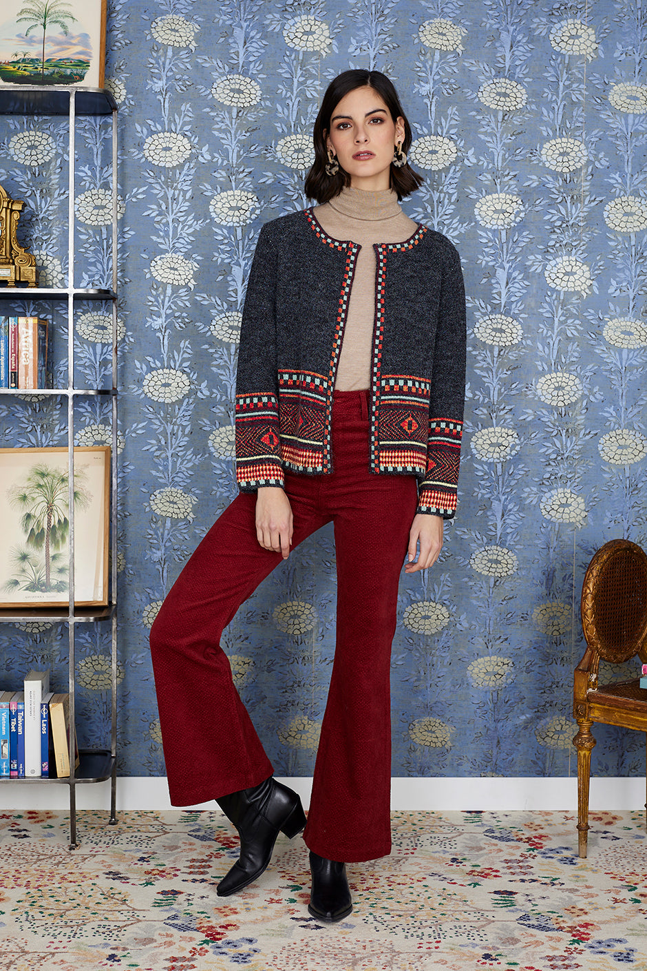 La chaqueta  Zermatt es elegante y refinada. Su color gris oscuro la hace muy fácil de combinar. Cuello redondo con discreto cierre. Manga larga. Destaca por su greca a contraste. Sigue tu talla habitual. Combínala con un pantalón color teja de nuestra colección Luna Llena para conseguir un look ideal!